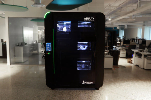 Material Type: Mosaic certified, Non-Mosaic, other materials not supported Material Bays: 8 x 1500cc Material Pods Per Printer (12,000cc/Printer Total) 32 x 1500cc Material Pods in Array (48,000cc/Array Total)